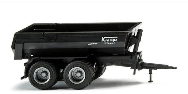 Black is beautiful – auch beim Halfpipe-Muldenkipper Längst gibt es im Landmaschinenbau kein Farbtabu mehr – Black is beautiful. Und so erscheint der Krampe Halfpipe Muldenkipper im attraktiven Schwarz! Die Großflächenlandwirtschaft, der Tiefbau, aber auch Landschaftsbau und Kommunalbetriebe setzen immer öfter auf die Halfpipe-Konstruktion von Krampe. WIKING realisierte den HP20, der als funktionelle Miniaturisierung eine sinnvolle Bereicherung facettenreicher Themenfelder im Maßstab 1:87 bedeutet. Nach dem Motto „Qualität auf Rädern“ produziert das münsterländische Unternehmen Krampe aus Coesfeld-Lette bereits seit 1983 Wannenkipper für die Land- und Forstwirtschaft, die Bauindustrie sowie für Kommunal- und Landschaftsbaubetriebe. Die Halbrundmulde übernahm Krampe aus dem Lkw-Bereich als durchaus formal harmonisch konzeptionierte Konstruktion. Durch den Wegfall der Längs- und Querträger hat die „Halfpipe“ ein niedrigeres Eigengewicht im Vergleich zur herkömmlichen Kippmulde. Dies erhöht die Nutzlast des Fahrzeuges – das zulässige Gesamtgewicht liegt beim Vorbild bei 20 Tonnen. Die Vorteile im Alltagsbetrieb sind augenfällig: Das Schüttgut rutscht bei der Verladung in einem flacheren Winkel über die Muldenwand. Beim Transport von „dicken Brocken“ wie Findlingen wird die Ausbeulung der Mulde verhindert. Die runde Muldenform verhindert überdies in den Muldenecken verbleibende Schüttgüter. WIKING bildete die Hydraulikzylinder an der Stirnwand der Halbrundmulde ebenso vorbildgerecht nach wie die übrigen Details von Fahrgestell und Mulde. Damit ist abermals ein Höchstmaß an Funktionalität in 1:87 gewährleistet. Mulde schwarz. Fahrgestell, Deichsel, Standfuß schwarz, Silberne Felgen, schwarze Kotflügel. Weiße Typenbedruckung „Krampe Kipper Halfpipe“.