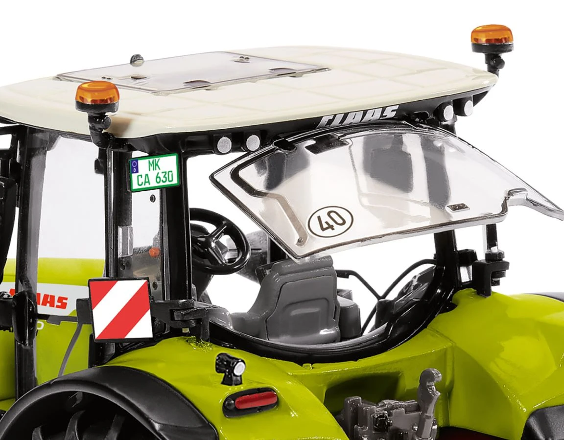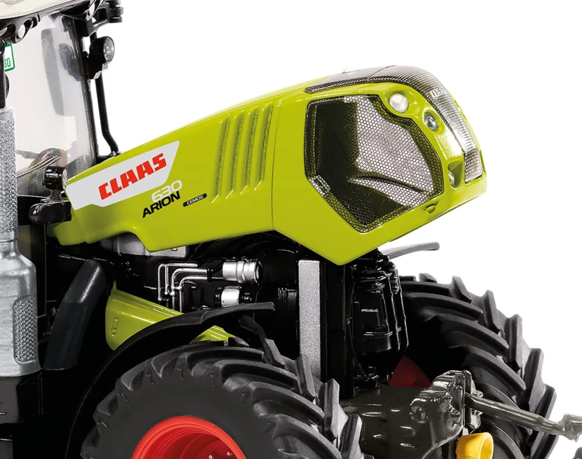 Detailkraft macht die Stärke des Claas Arion 630 aus Er zählt zu den Flaggschiffen – WIKING stellt den Claas Arion 630 jetzt mit neuer Optik vor. Mit dem imposanten Schlepper erweitert WIKING die Palette der Harsewinkeler Schlepper-Giganten, die mit der Axion- und Xerion-Reihe das kraftvolle 1:32-Spektrum ausmachen. Der neue Claas-Schlepper überzeugt bei WIKING mit bewährter Detailqualität, die durch zahlreiche Feinheiten vorbildgerecht aktualisiert wurde. Das Modell mit sympathischen Funktionsdetails und präzise nachgebildeter Fahrerkabine ist handgefertigt und besteht aus Zinkdruckgussbauteilen, die mit filigranen Kunststoffelementen verfeinert werden. So wurde die Kabine mit einem neuen CEBIS Bedienpanel ausgerüstet, zugleich erhält das Kabinendach eine LED-Rundumleuchte. Auf beiden Seiten befinden sich klappbare Warntafeln, während die vorderen Blinker in neuem Design erscheinen. Gleiches gilt auch für den aktualisierten Auspuff, die neuen Arbeitsleuchten an der Kabinenfront sowie die Weitwinkel-Spiegel. Jede Miniatur bedeutet Technikbegeisterung in Kombination mit der faszinierenden Detailkraft. Die Motorhaube hat WIKING zum Öffnen angelegt, so dass sich darunter eine detaillierte Motordarstellung präsentiert. Überdies verfügt das Modell über bewegliche Ober- und Unterlenker sowie Anschlussmöglichkeiten, sofern Anhänger eine Kardanwelle erfordern. Die Pendelachse lässt sich über das Lenkrad steuern. Mit viel Detailkraft lässt die Kabine einen authentischen Blick in die Kabine zu, deren Fahrertür ebenso zu öffnen ist wie das Heckfenster. Auch die Außenspiegel lassen sich aus- und einklappen. Im Inneren der Kabine warten präzise nachgebildete und bedruckte Instrumente, während Kennzeichen, Warnschilder, Leuchten, aber auch Hydraulikanschlüsse filigran bedruckt sind. Warntafeln sowie grobstollige Reifen machen den Gesamteindruck perfekt.