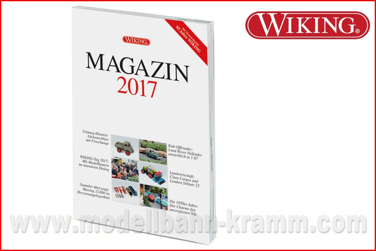 Ganz im Zeichen des 85. WIKING-Geburtstags steht auch das WIKING Magazin 2017. Es erinnert an den Tag der offenen Tür in Lüdenscheid, hält aber zugleich auch viele andere Hintergrundthemen rund um die Marke WIKING bereit. Es geht natürlich um die zahlreichen Neuheiten, die die Traditionsmodellbauer in diesem Jahr vorgestellt haben. Darüber hinaus wird ein Rückblick auf die Programm-Neuheiten von vor 25 und 50 Jahren geworfen.