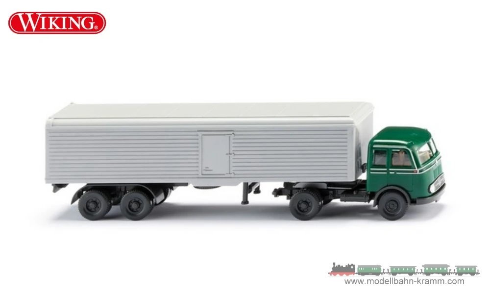 Modellbaumeister Alfred Kedzierski baute daraus den damals innovativ neuen Kofferauflieger mit zwei Achsen. Jetzt dreht WIKING das zeitgenössische Rad des Aufliegermodells zurück und hat den zweiachsigen Kofferauflieger aus neuen Formen nahezu identisch nachgebaut. Die Urformen waren einst umgebaut worden, so dass weitere Modelle nach historischen Vorbildern nicht mehr möglich waren. Heute passen die zeitgenössischen Auflieger ideal in die WIKING-Philosophie, dienen sie doch dazu, die damals wachsende Lkw-Welt zeitgerecht zu miniaturisieren. Mit der Zugmaschine und dem Fernfahrerhaus des Mercedes-Benz Pullman – ebenfalls aus neuen Formen mit historischer WIKING-DNA – entsteht ein wunderschönes Lkw-Gespann, wie man es sich schon lange gewünscht hat.